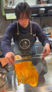 2.5メートルの大迫力の鉄板焼きが目の前で味わえるお好み焼き屋、居酒屋!