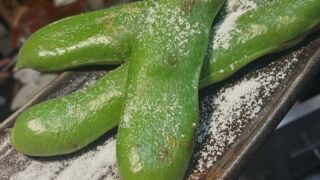 一粒一粒が大きくて、スーパーだと2粒入りのサイズが…なんと3粒入りの立派なそら豆なんです!