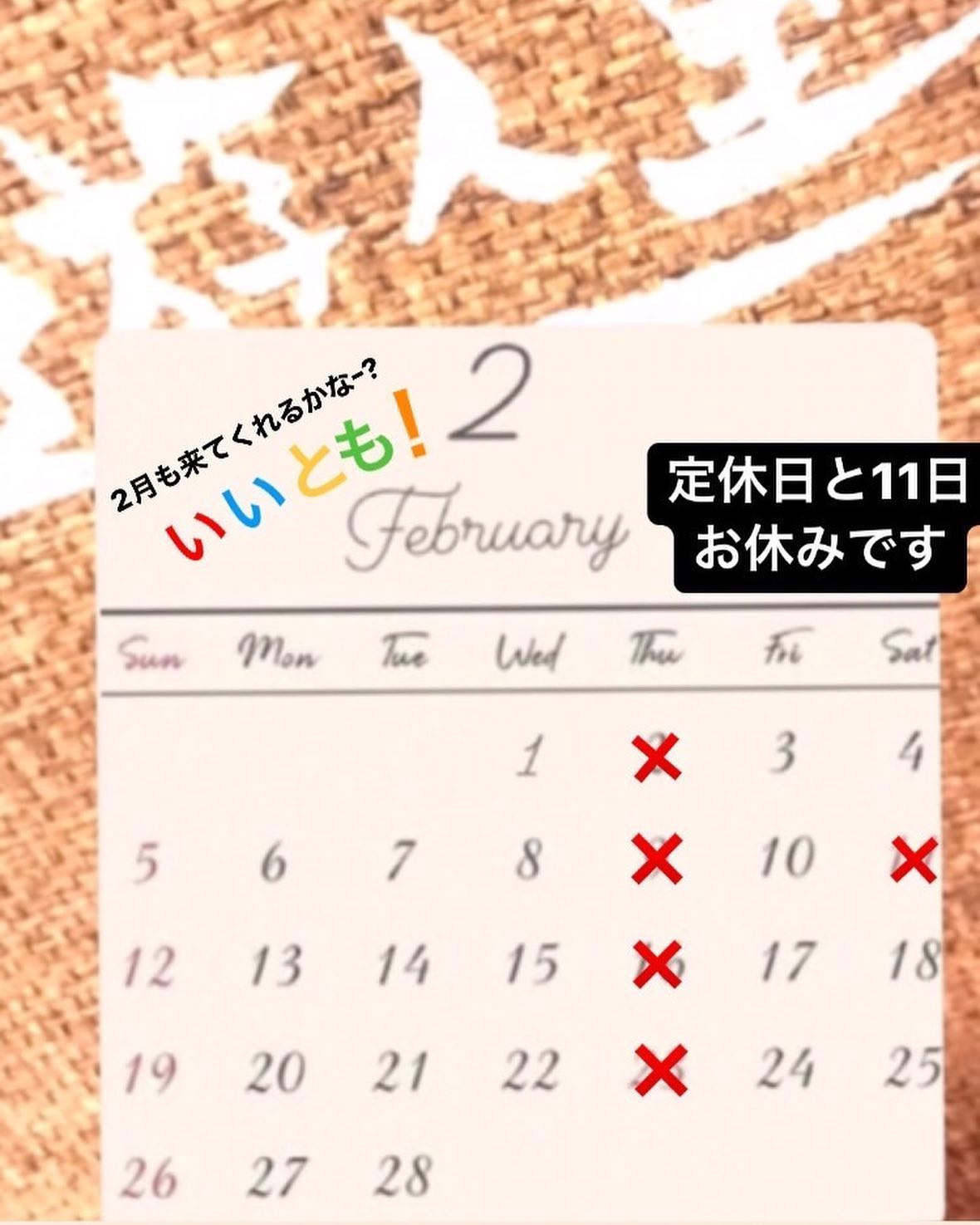 今月のお休みです!