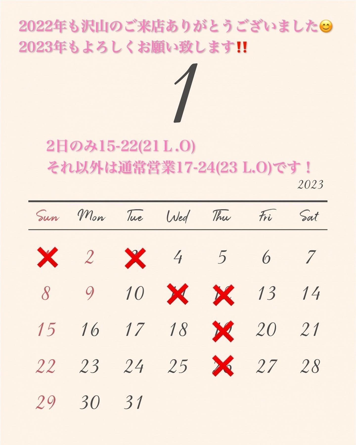 年内は30日まで!年始は2日からです! ⁡