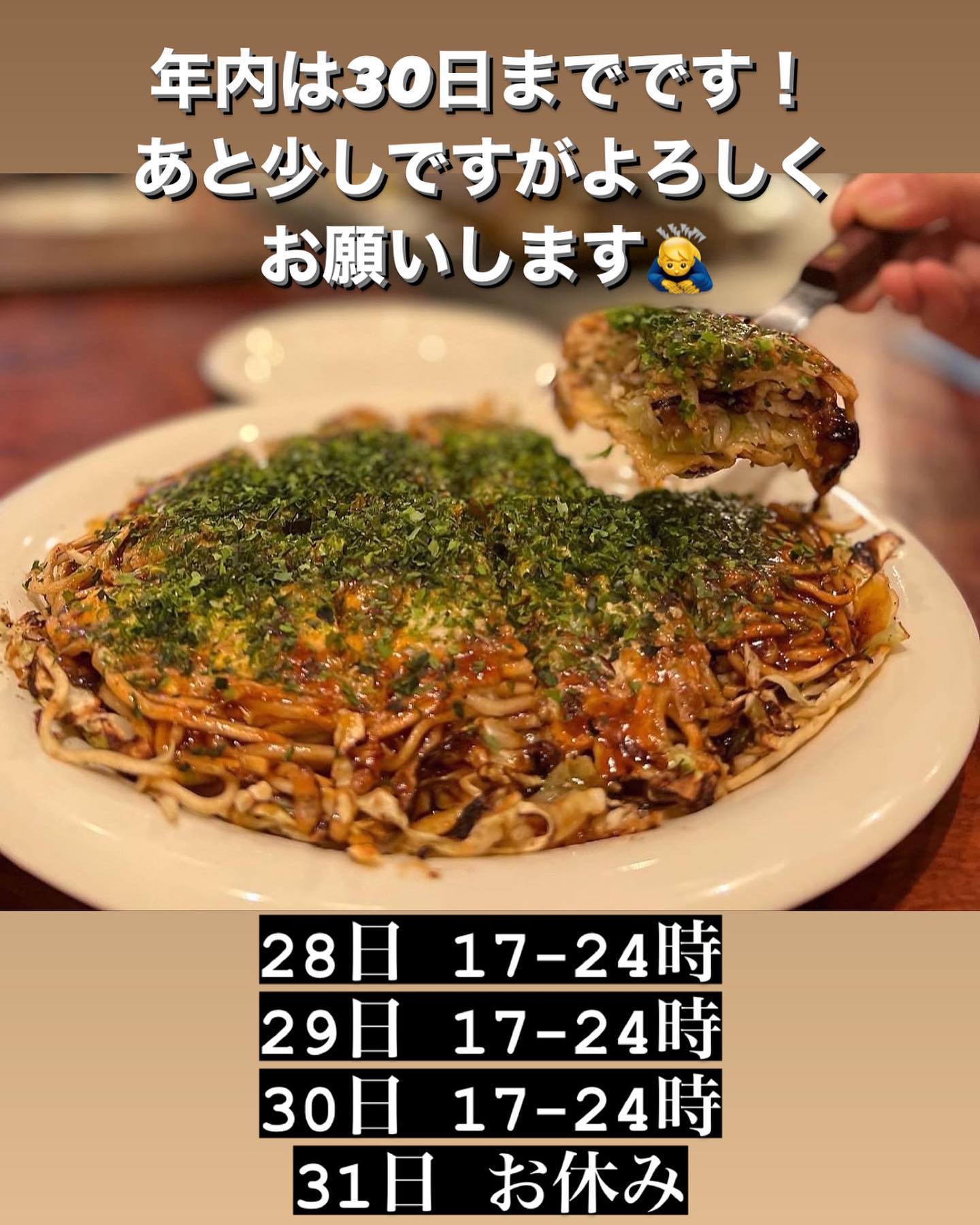 お好み焼き食べて年越しに備えましょう♪♪