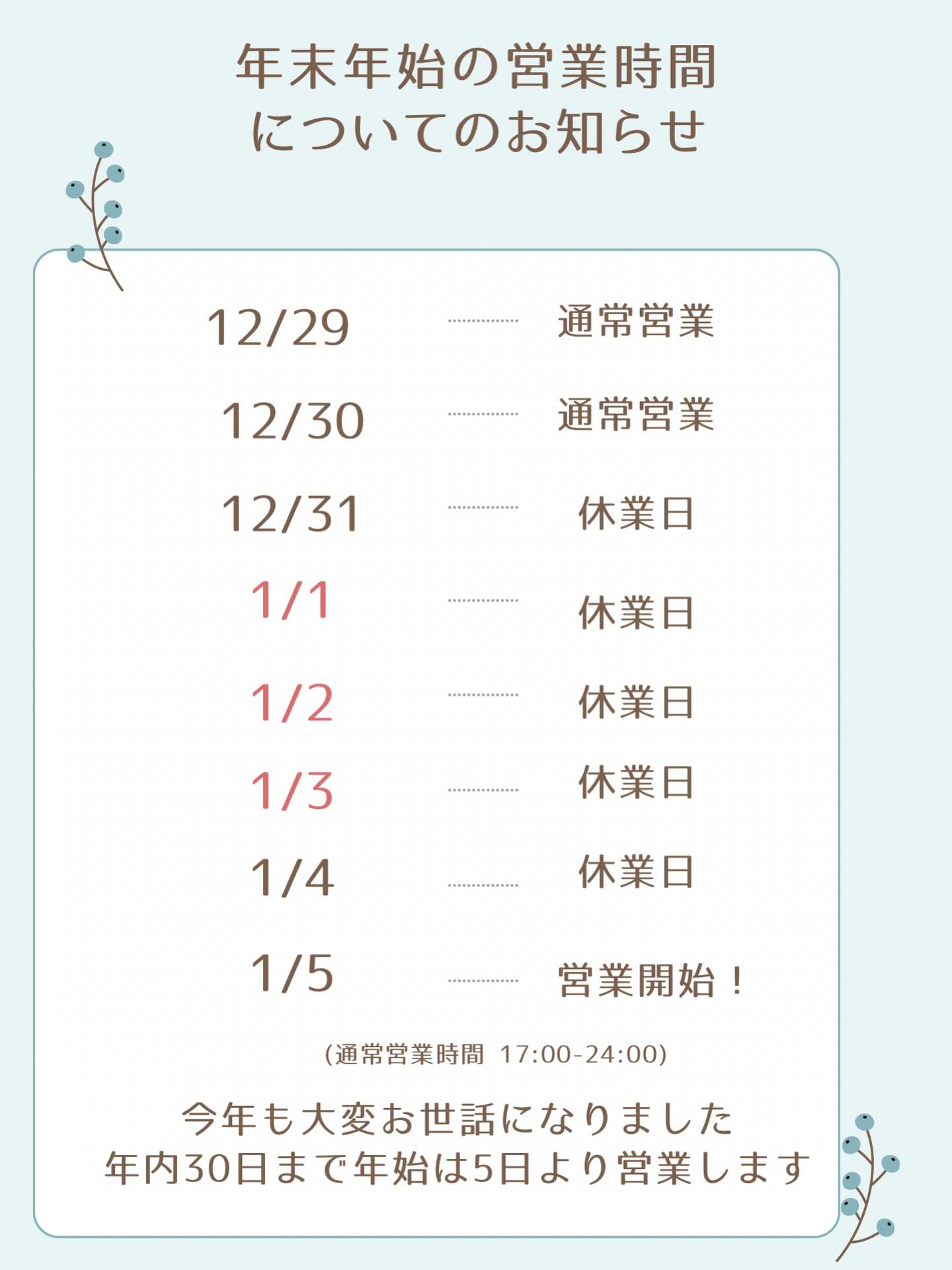 今年の営業も残り2日となりました!