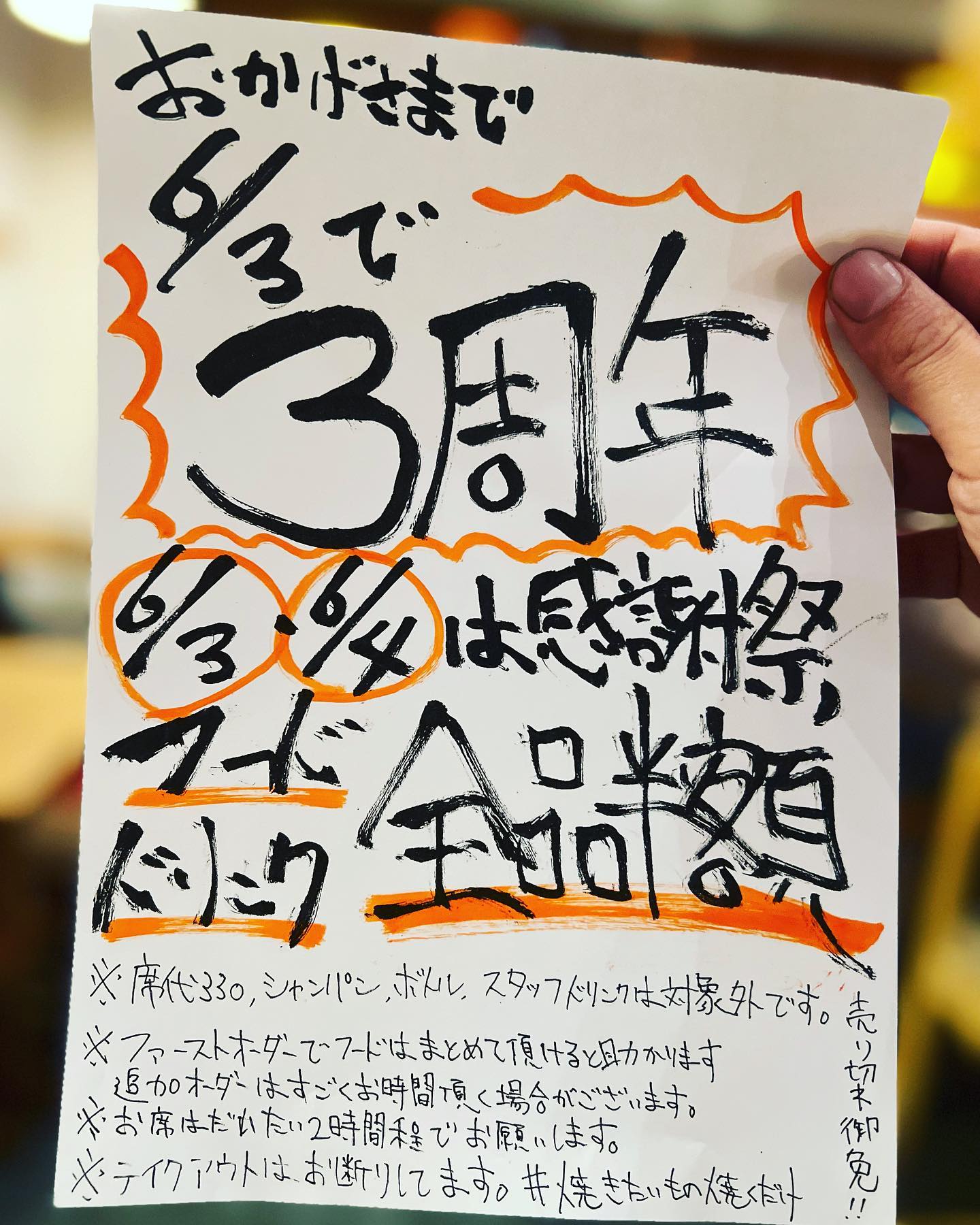 本当に日頃より支えて頂いてるお客様、業者様、地域の方々、スタッフのお陰で様で3周年を迎えることが出来ました!本当にありがとうございます!