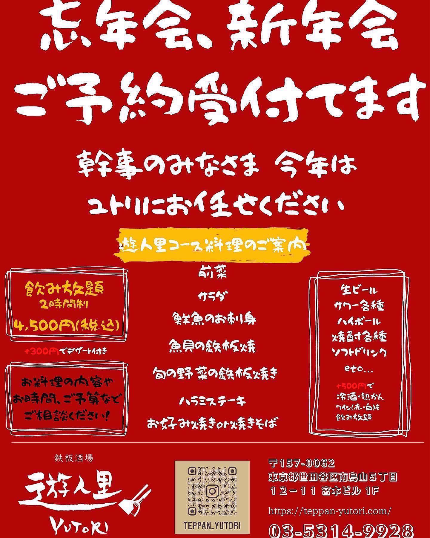 忘年会、新年会、飲み放題付きコース、貸切などなんでもご相談ください♂️