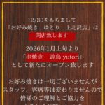 2026年1月9日より新たに 「串焼き 遊鳥 yutori」としてリニューアルする事となりました️。